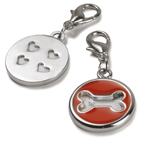 Kovový prívesok na pripevnenie k obojku pre psa alebo mačku, na ktorý môžete vygravírovať kontaktné údaje a adresu majiteľa.
