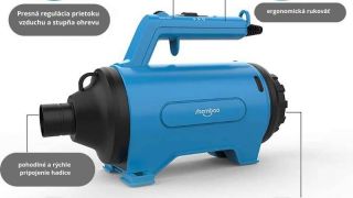 Využitím plného výkonu motora môžete vyfúknuť vodu zo srsti, následne znížiť prúdenie vzduchu a s pomocou ohrievača vysušiť srsť.