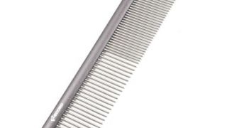 Hrebeň celokovový na srst. Rukoväť je vyrobená z hliníka, pričom zuby sú vyrobené z nehrdzavejúcej ocele.