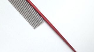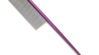 Kovový hrebeň s hliníkovou rukoväťou je nástroj používaný na česanie vlasov alebo srsti psa. Kovový hrebeň má zuby, ktoré sa používajú na oddeľovanie a rozčesávanie srsti, zatiaľ čo hliníková rukoväť poskytuje používateľovi pevné a ľahké uchopenie. Tento typ hrebeňa sa často používa v kaderníckom a salonie na úpravu zvierat.
