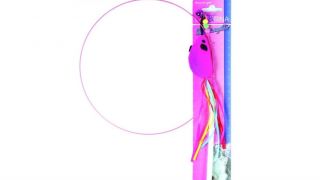 - Interaktívna hračka: Dlhý rybársky prút zakončený rozkošnou ružovou myškou, ktorá upúta pozornosť mačky.