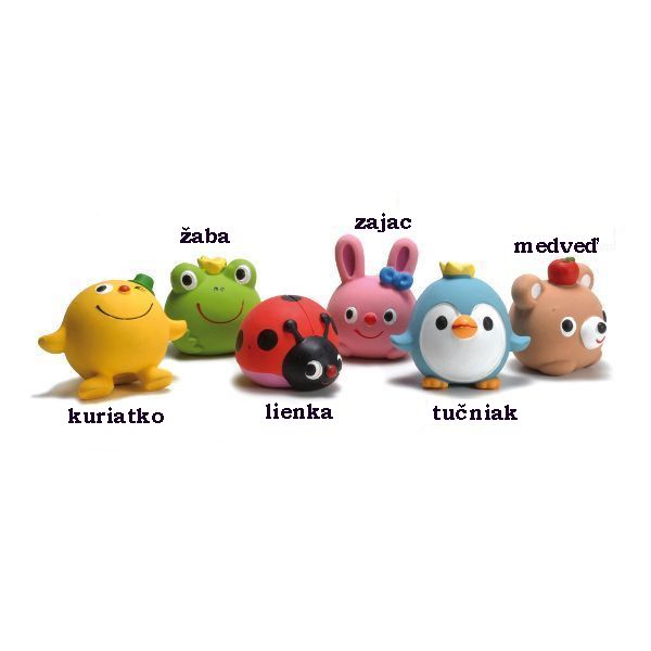 Farebné, pískacie hračky pre vašich miláčikov v tvare: lienky, tučniaka, kuriatka, žabky, zajačika, medvedíka.