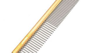 Hrebeň na rozčesávanie srsti pre psov, s kombináciou dvoch rôznych odstupov zubov:
