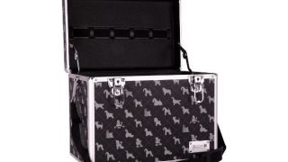 Krásny, módny kufor vyrobený z ekokože so psím vzorom. Perfektný na uskladnenie kozmetiky a doplnkov pre starostlivosť o domáce zvieratá.