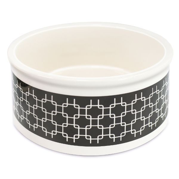 Misa krémovej farby s čiernym ozdobným prúžkom.