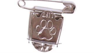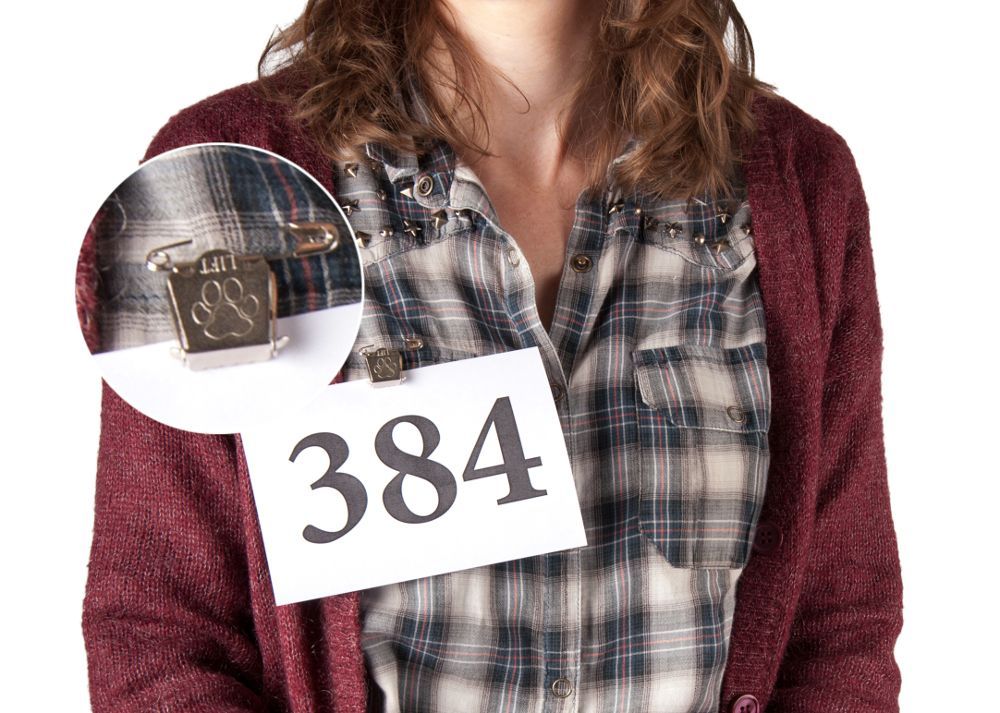 Pripevňuje sa k oblečeniu pomocou zatváracieho špendlíka. Číslo podbradníka je prišpendlené pomocou spony.