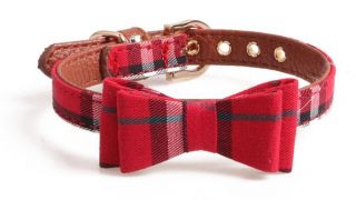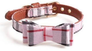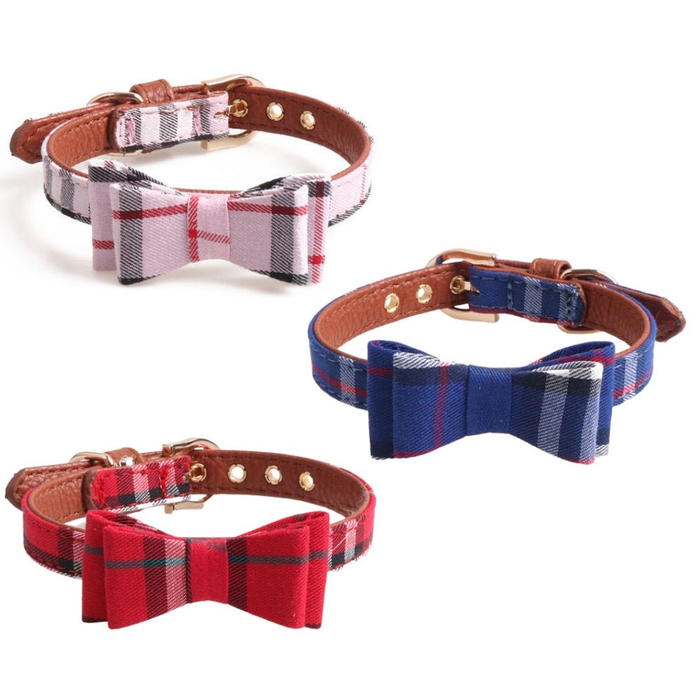 Krásny obojok pre psa s módnym károvaným vzorom, zvnútra podšitý hnedou ekokožou.
