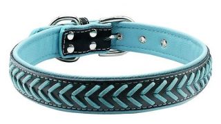 Pohodlný obojok pre psa zapnutý striebornou sponou. Vyrobený z dvoch vrstiev, vďaka čomu je veľmi odolný.