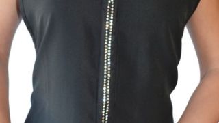 Predné zapínanie na zips s ozdobnými kamienkami. Detaily a dizajn dodávajú zástere elegantný a štýlový vzhľad.