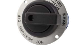Originálny otočný prepínač Kraus & Naimer, používaný vo fénových sušičoch Speedy Dryer. Slúži na výber pracovného režimu: COLD / OFF / HOT.