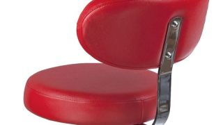Otočná stolička/hocker, farba červená, má dokonale tvarované sedadlo a čalúnenie z kvalitnej ekologickej kože. Výškové nastavenie sa vykonáva hydraulicky, vďaka čomu je univerzálne a veľmi praktické.