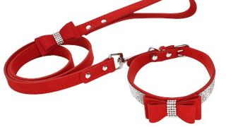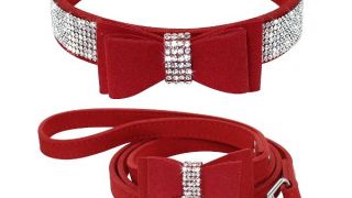 Súprava obojk a vodítko s motýlikom a kryštálikmi.