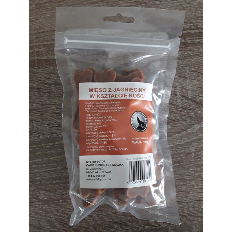 Pochúťka pre psov Jahňacie mäso v tvare kosti 100g