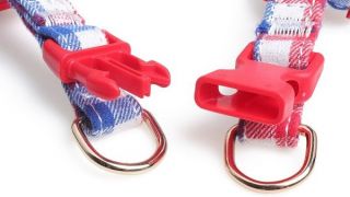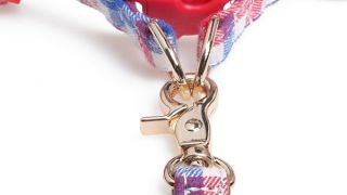 Módna, farebná súprava pre psov postroj a vodítko s kockovaným motívom, majú kovové prvky, ako je pracka, karabínku alebo polkruh na pripevnenie karabíny na vodítku.