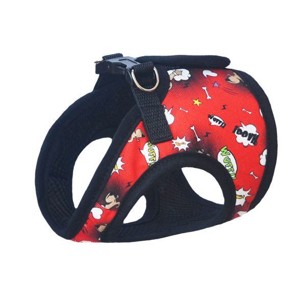 Materiálový postroj pre psa. Postroj veľmi pohodlny a príjemný na dotyk a riadne vykonany, dáva na psa úžasný vizuálny účinok. Zapínanie tohto modelu je na vrchu, pozostáva z plastovej spony a polovičných kovových koliesok, na ktoré pripevňujeme vodítko s karabínkou. Vyrobený z dvoch vrstiev materiálu. Vzdušná a priedušná sieťovina zaisťuje cirkuláciu vzduchu, horná časť umožňuje výber správneho vzoru podľa vášho vkusu.