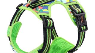 Pohodlný, mäkký postroj pre psa, ľahko sa nasadzuje a neobmedzuje v pohybe. Postroj je vyrobený z nápadného farebného materiálu, s prvkami z priedušnej sieťoviny, zapínaný plastovými prackami.