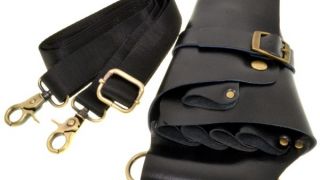 Je vyrobený z kože, má nastaviteľný remienok a 5 vreciek na nožnice.