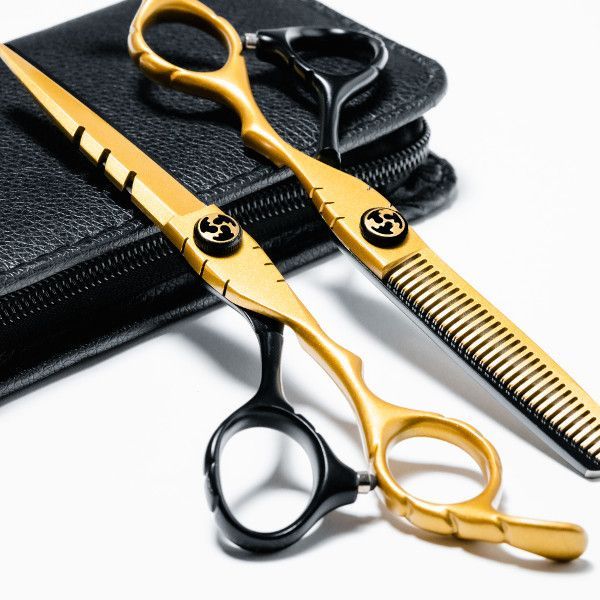 Sada nožnice efilačné a nožnice rovné 6" zlatá farba
