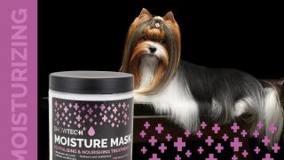 Show Tech+ Moisture Mask je intenzívna hydratačná maska pre všetky dlhosrsté plemená alebo plemená so suchou, krehkou alebo poškodenou srsťou.