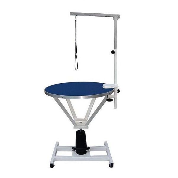 Trimovací stôl hydraulický otočný, ideálne pre malé a stredné zvieratá. Stôl je zakrytý protišmykovou gumou,ktorá sa ľahko čistí.Podložka je modrá.
