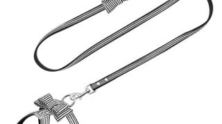 Súprava postroja s vodítkom v elegantných čierno-bielych pásoch, vodítko dodatočne ozdobené mašľou - motýlikom, odporúčame pre malé psy.