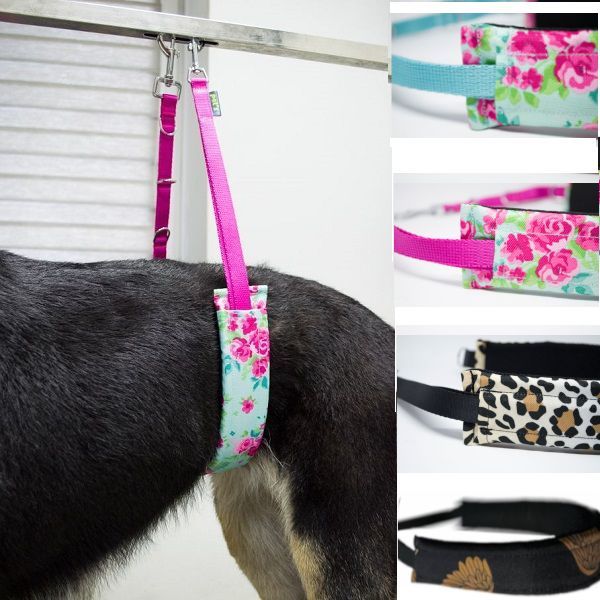 Popruhy uľahčujúce Vašu prácu v salóne psov. Popruhy vyrobené z mäkkého materiálu, tak to sa nezarezaju do brucha psa.  Popruhy  možné zavesiť na držiaku šibenice na akýkoľvek trimovaci stôl. Prívesok má dva karabínkou a 4 polovičné kolieska pre ľahké nastavenie vodítka.