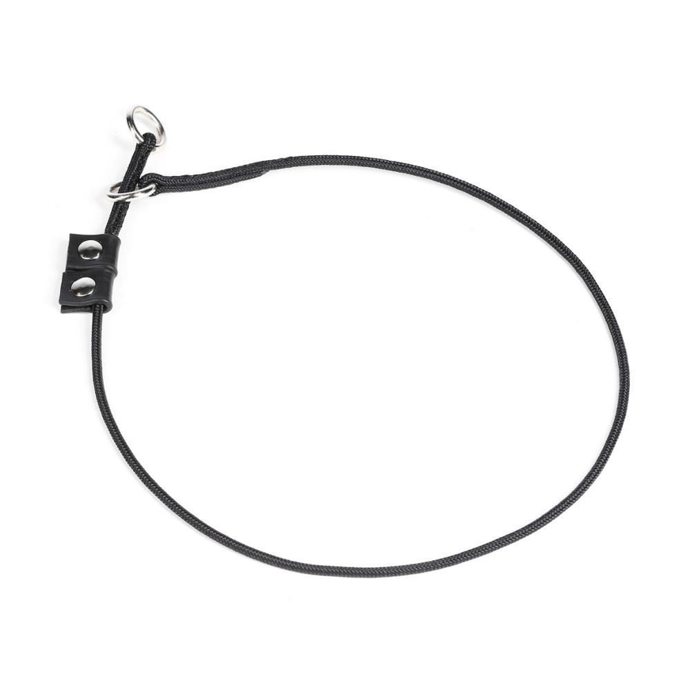Výcvikový obojok , vyrobený z pevnej 3,5 mm hrubej textilnej šnúry, často používajú cvičitelia psov, ktoré sú agresívne alebo v stave paniky.
